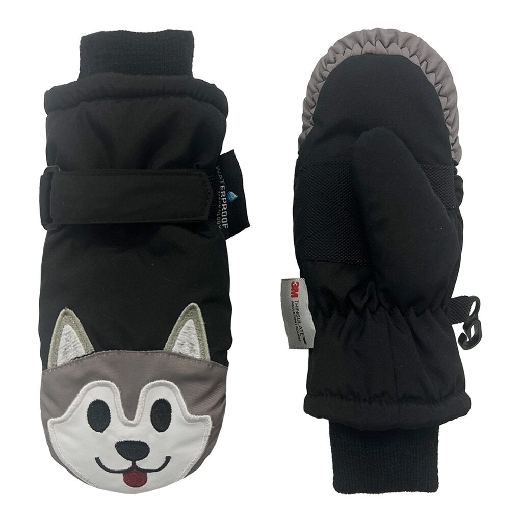 Grand Sierra toddler's size 2-4 Tusser Ski Mittens with adorable animal faces will keep their little hands warm, dry, and comfortable when they're playing outside in the snow. Thanks to a waterproof lining and 3M Thinsulate™ insulation they'll never suffer another moment of numb fingers while building snowmen, sledding, or playing outdoors.