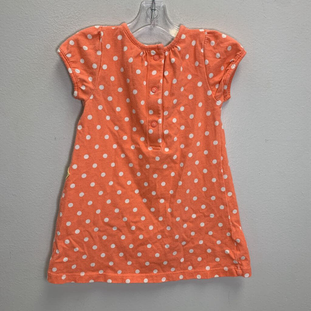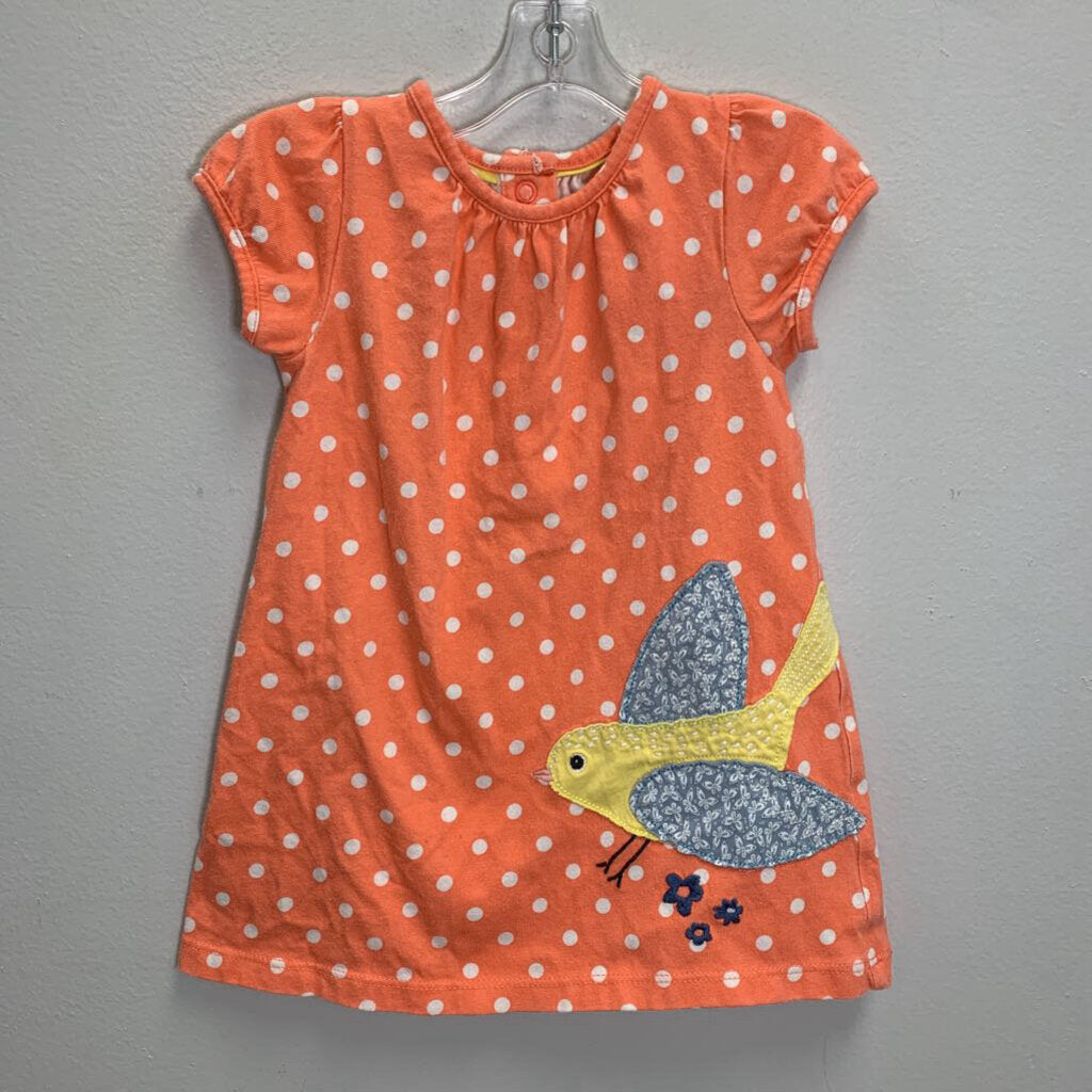 6-12M: Short Sleeve Polka Dot Jersey Dress - Applique Bird
