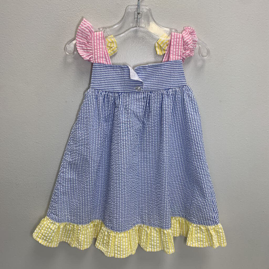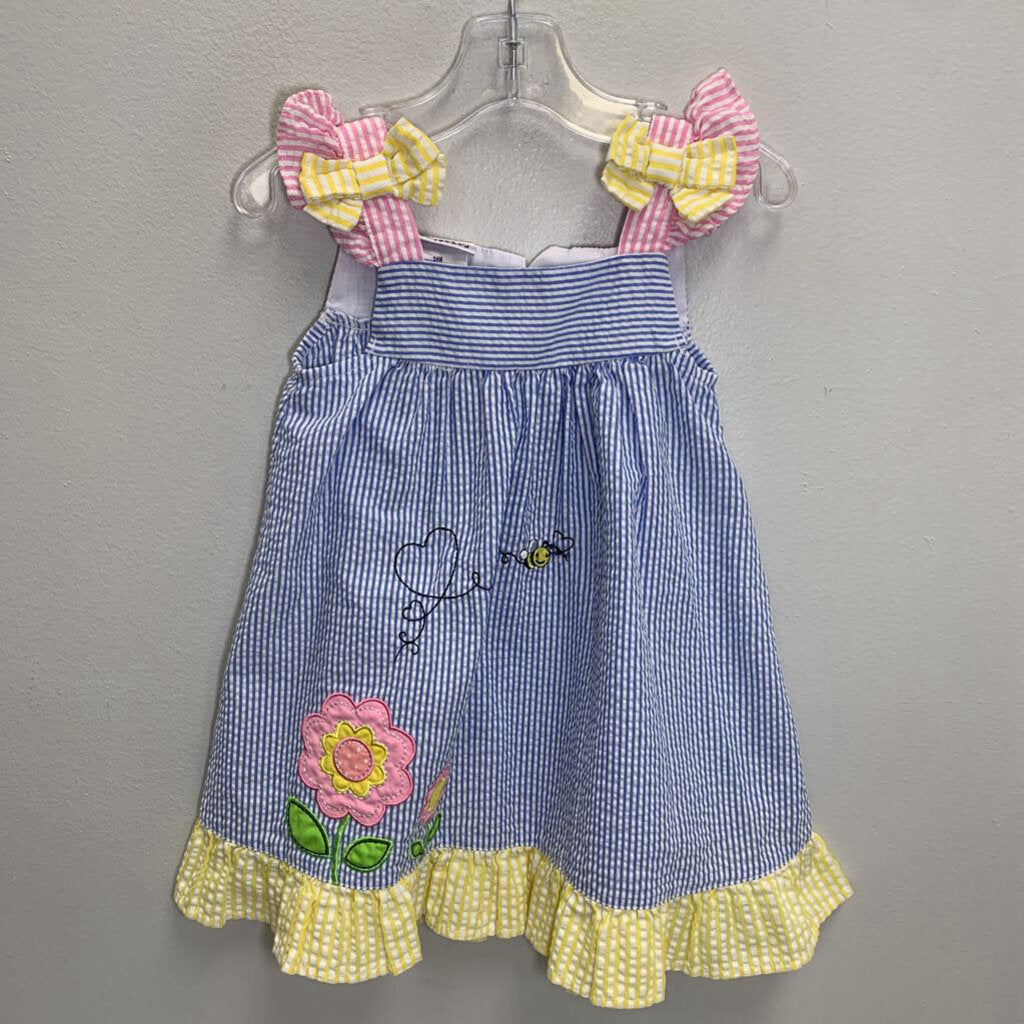 24M: Seersucker Sun Dress - Floral Appliques AS IS