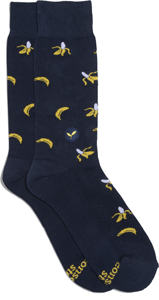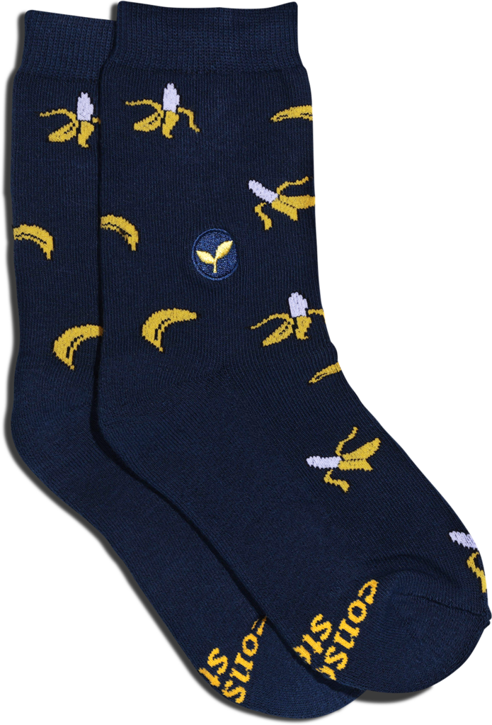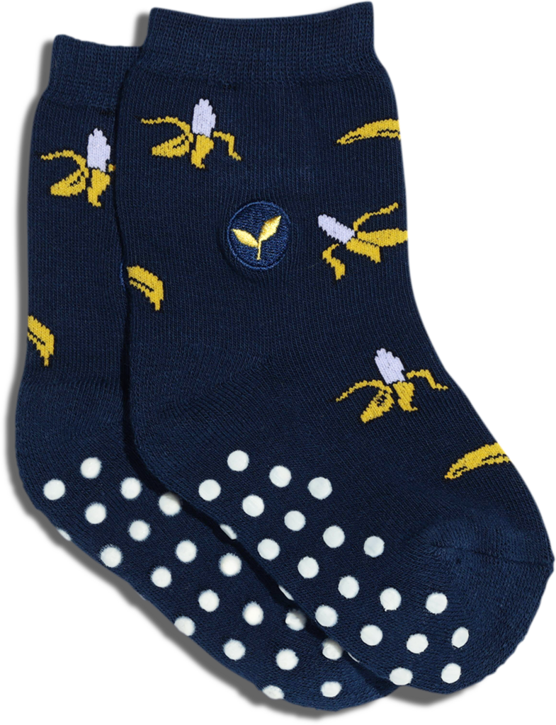 Let your kid go bananas trying to wear through these navy banana socks. With extra padding and soft, thick organic cotton, they’ll refuse to bruise.