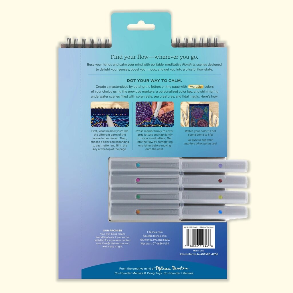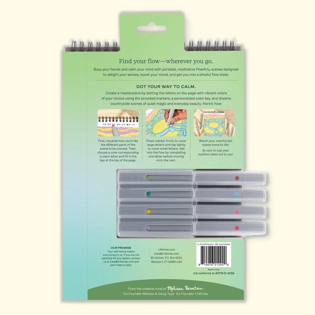 Lifelines FlowArt Pads are guided art meditations designed to help you achieve a calming flow state. Each scene is thoughtfully crafted to encourage repetitive, relaxing movements, promoting mindfulness and reducing stress.