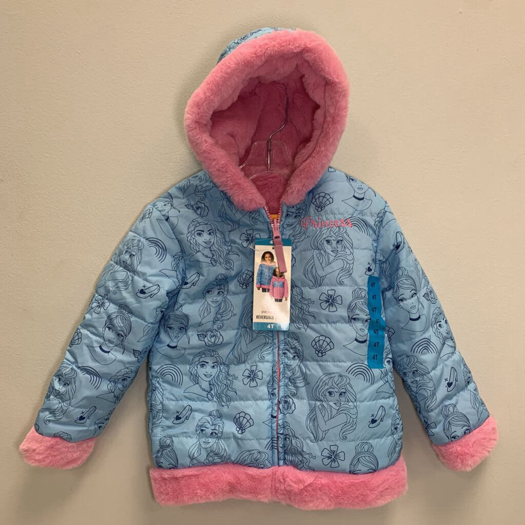 4T: Reversible Puffer / Faux Fur Jacket - Disney Princesses NWT