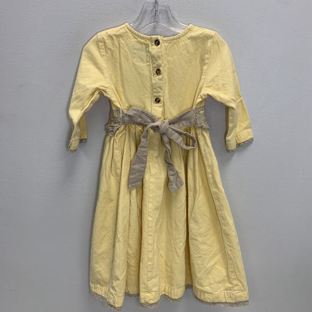 6X: Belted Cotton Twirl Dress w/ Lace Detail