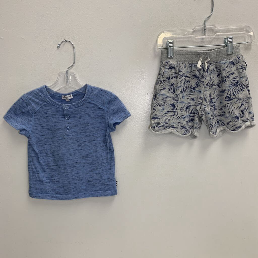 2T: Henley Shirt and Leaf-Print Shorts Set