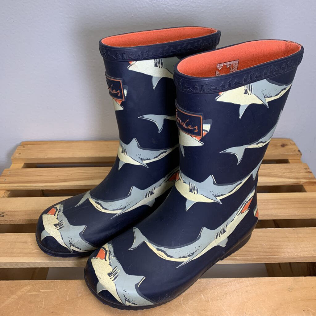 12: Junior Roll Up Flexible Wellies Boots - Shark