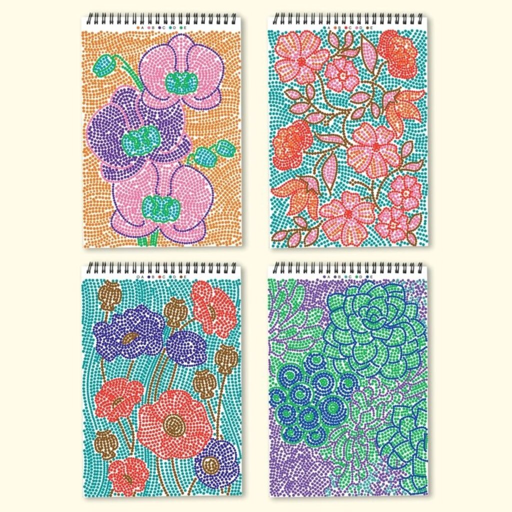 Dot-by-Letter includes 20 meditative scenes and four double-sided markers in a detachable storage tray. Engage in a meditative dotting activity using a guided letter key to fill the page with vibrant dots, creating beautiful scenes. Simply match the colors to the letters, and let the rhythmic motion of dotting bring you a sense of calm. Compact and portable, this pad is perfect for calming your mind on-the-go, unwinding before bed, or taking a work or study break to de-stress.