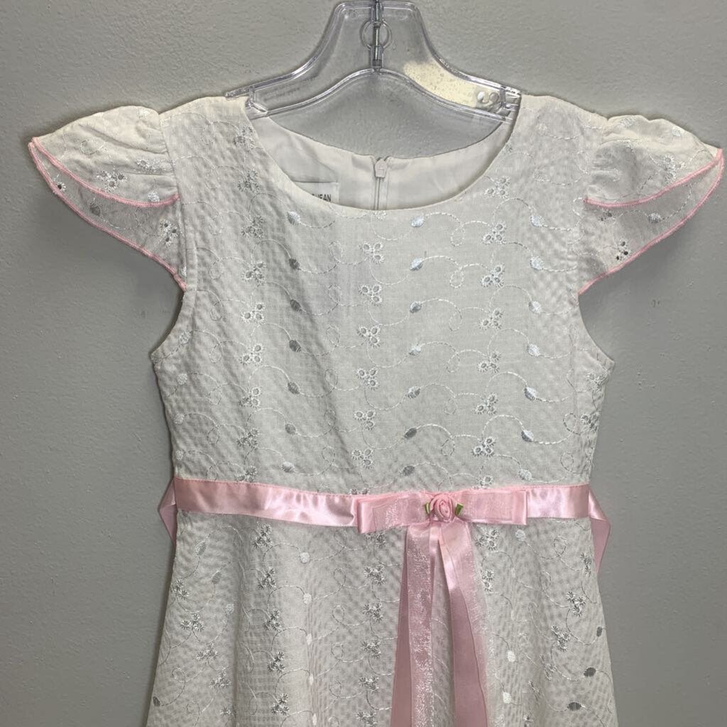 7: Embroidered Pattern and Pink Ribbon Bow
